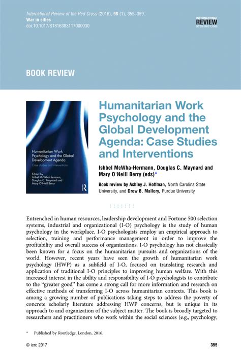 Read Online Humanitarian Work Psychology and the Global Development Agenda: Case studies and interventions rtf Gutenberg